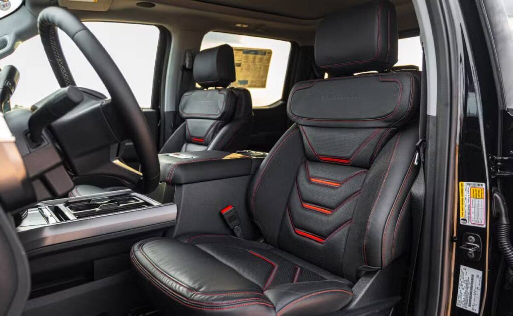 Puertas adentro, la F-250 VelociRaptor 1200 ofrece un interior personalizado, con tapicería en cuero negro, detalles en rojo, estribos eléctricos iluminados y alfombrillas para todo clima. Cada unidad cuenta con placas numeradas, recordando que se trata de una serie limitada a solo 250 ejemplares.